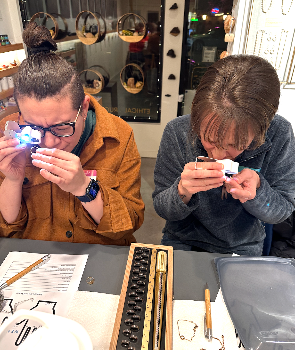Lexie Tiffany, Lead Bench Jeweler (at WEND), is an expert in all manner of stringing, wire working, shaping, bending, and detailed jewelry cleaning.