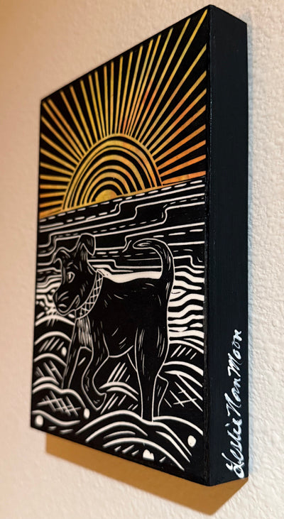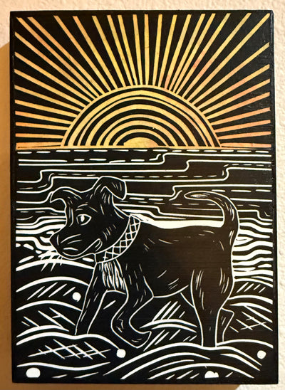 Leslie Nan Moon is a Seattle-area printmaking artist known for her vivid linocut works that celebrate Pacific Northwest themes and local landmarks. She is recognized for her distinctive jigsaw puzzle linocut technique, where she carves, inks, and reassembles linoleum blocks to create detailed multi-colored prints. Leslie’s artistic style is deeply narrative, often blending real and imagined elements inspired by the region’s natural beauty and cityscapes. Her art is currently featured on 19 of the Seattle Monorail columns along 5th Avenue.