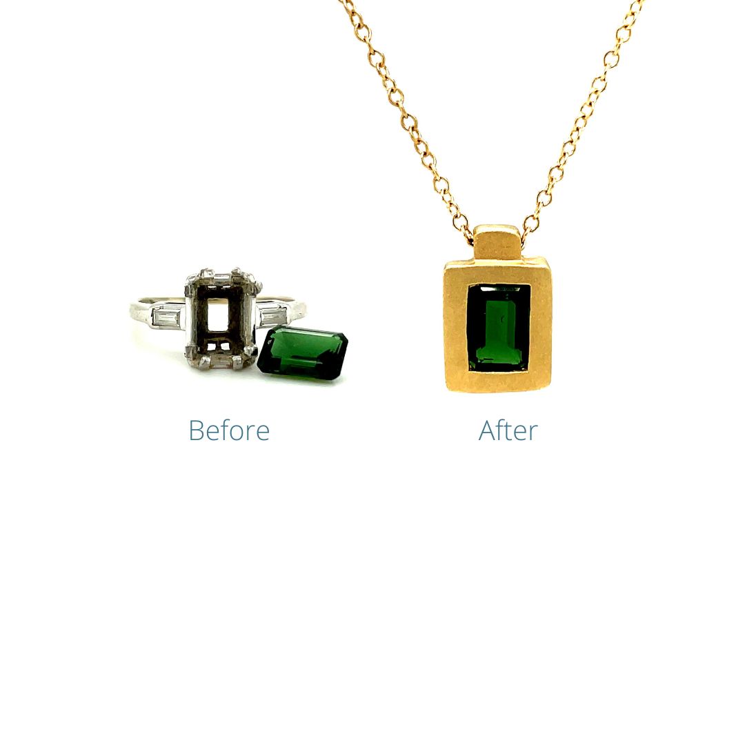 The original opal necklace was too busy for her taste. We used the extra gold for a new ring and simplified the pendant.