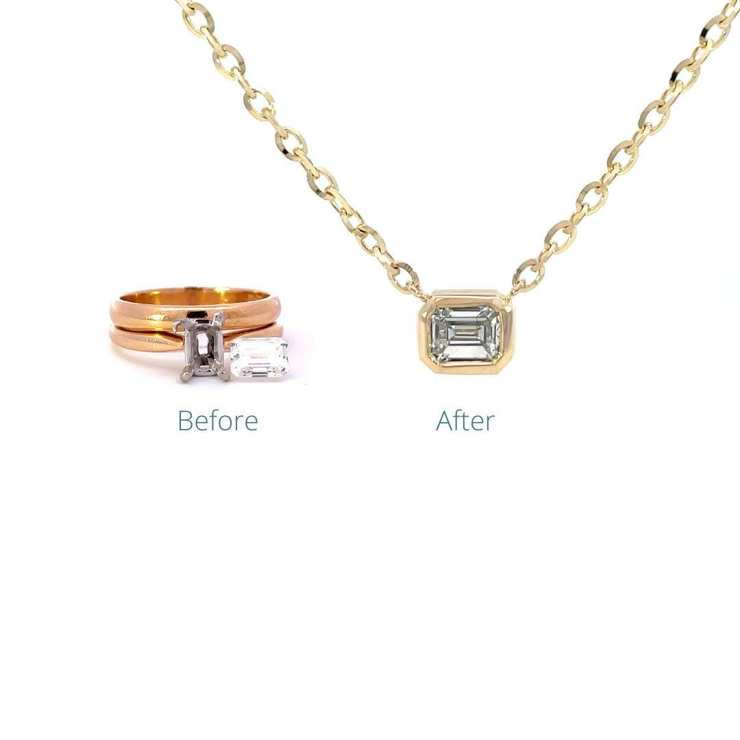 We pulled the center stone from her original engagement ring, and made it into a forever necklace for her daughter.