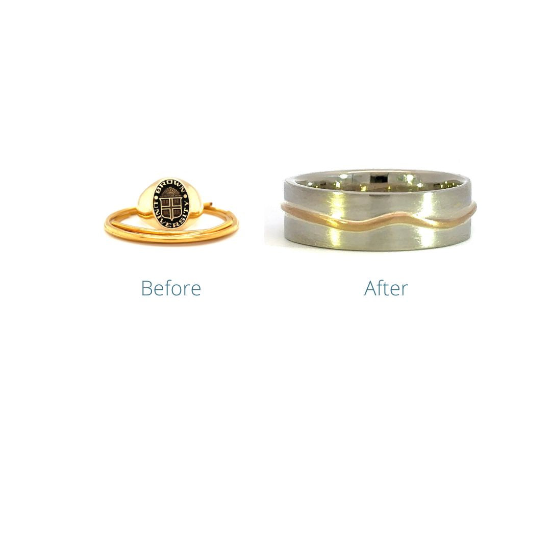 She wanted to use the gems and gold from 4 special rings in her life. We made them into one ring to convey the decades of meaning within these gems and gold.